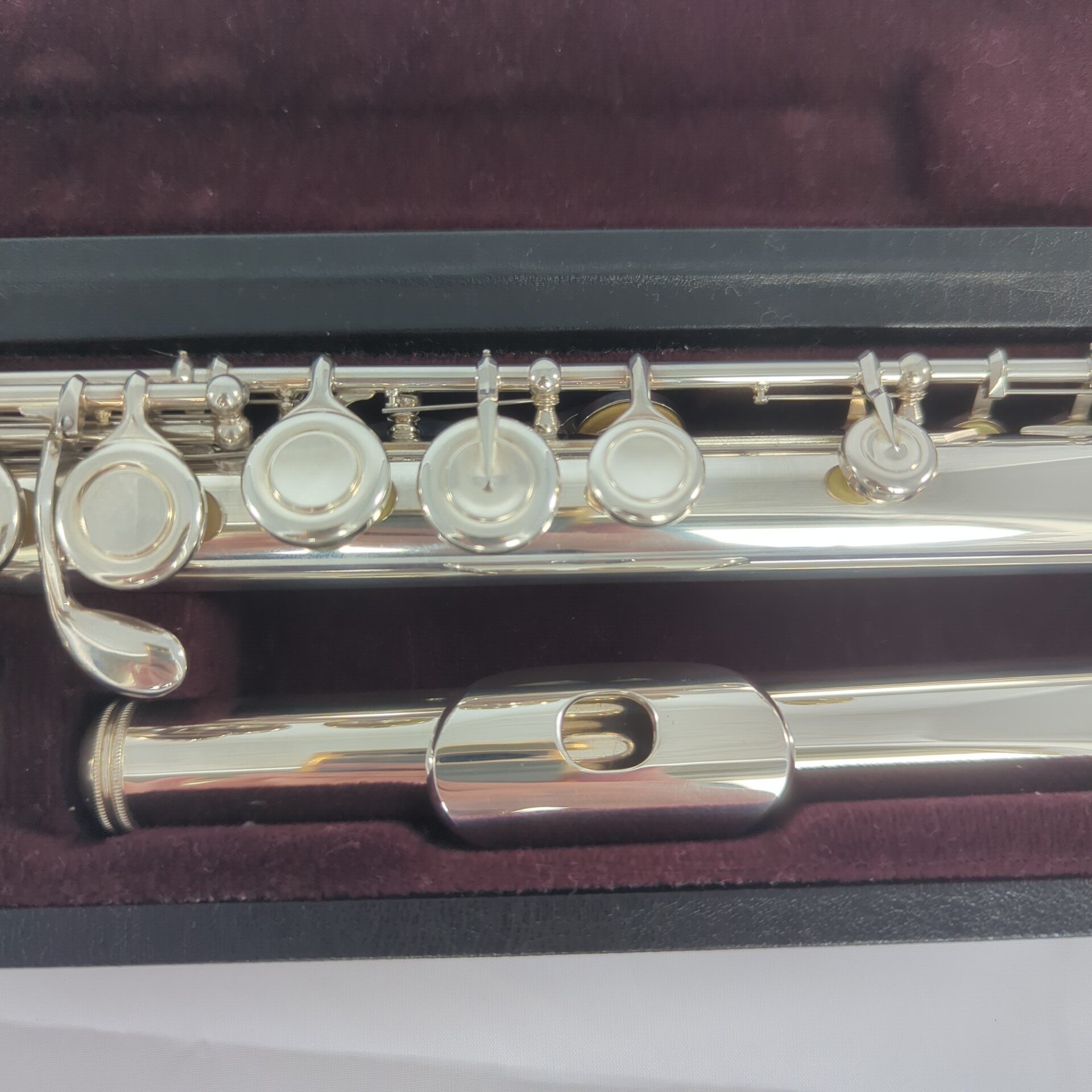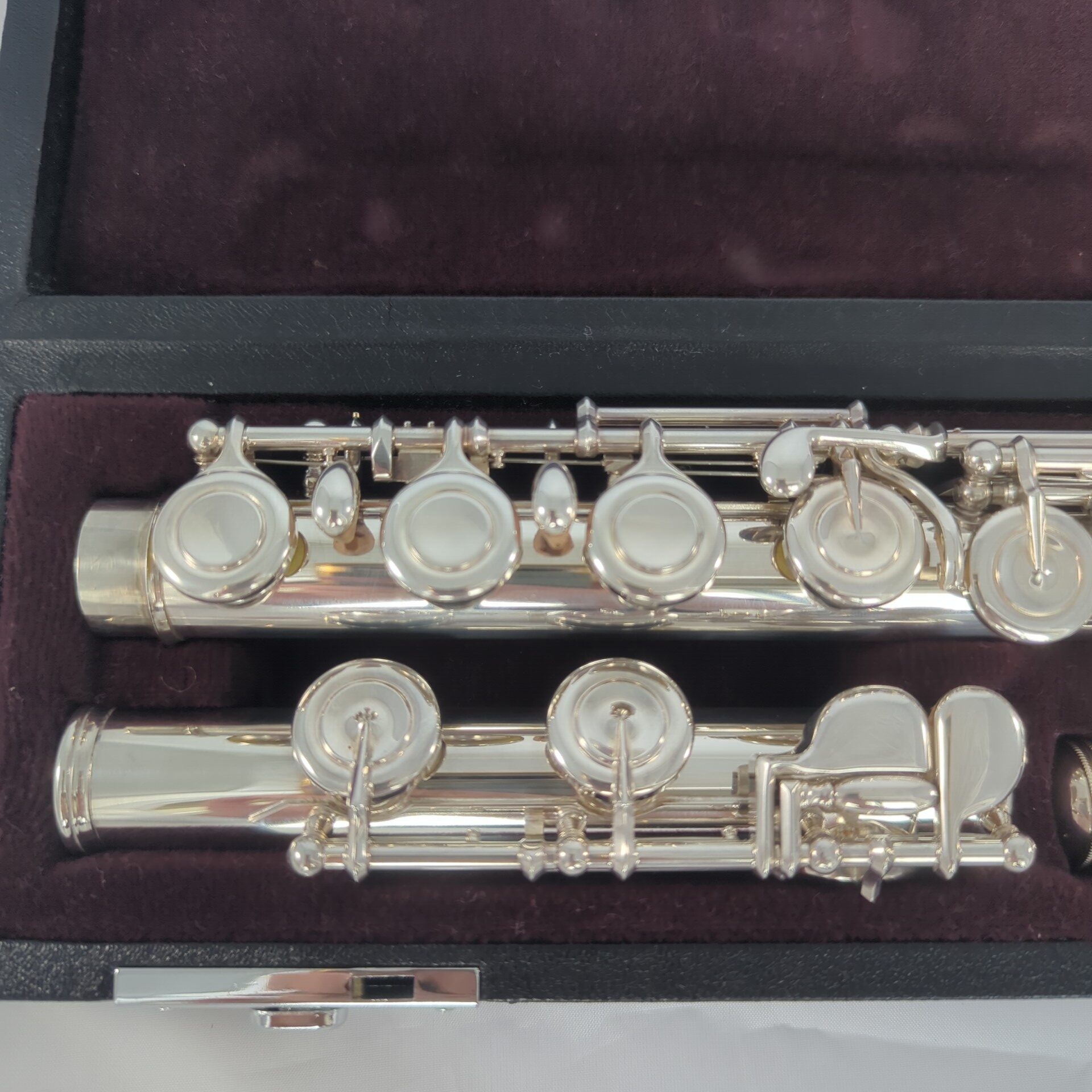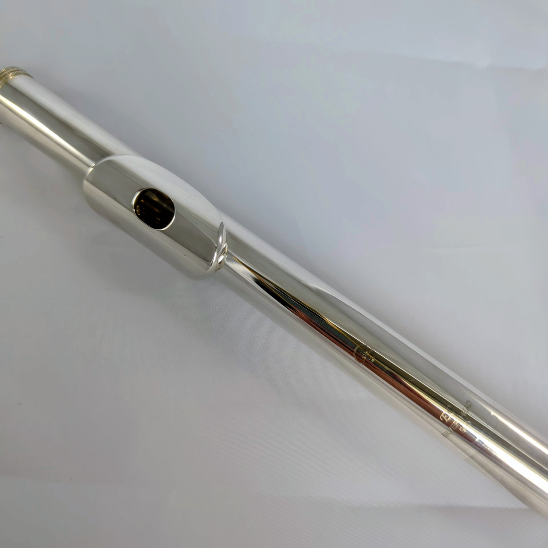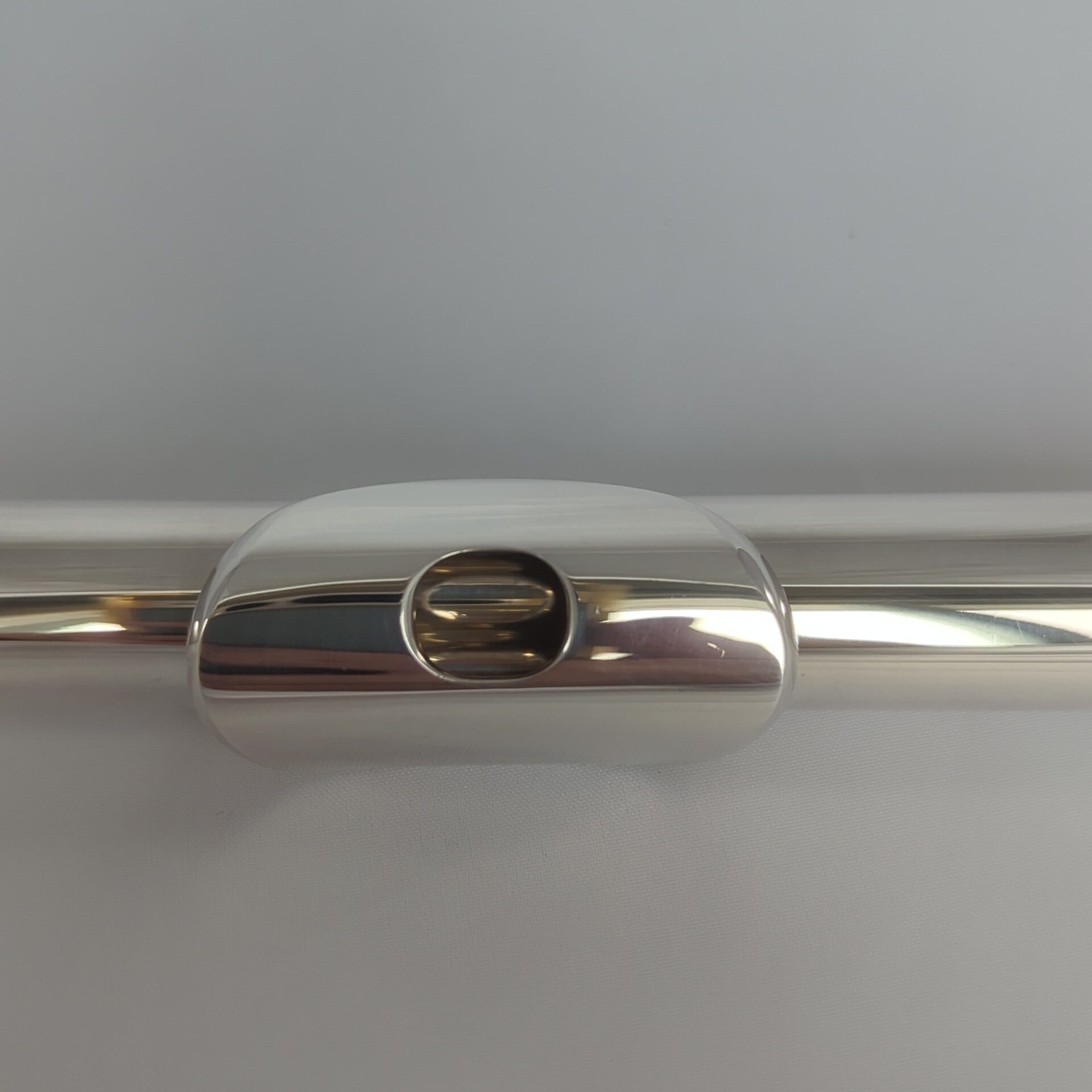 Flûte traversière semi-professionnelle Yamaha à plateaux fermés, pointes françaises, mécanisme facilitateur de Mi, fabriquée au Japon. La tête coupe EC est en argent sterling, le reste de la flûte est plaqué argent. Mécanisme ultra précis, du même calibre que les flûtes des séries 6xx à 8xx. Mais à prix moindre car seule la tête est en argent.
